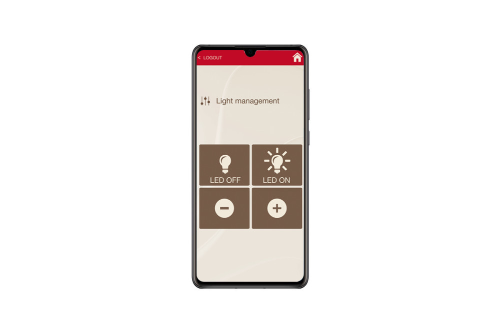Voor de besturing van de F45L luifel dankzij de praktische Fiamma App (voor Android en iOS); openen en sluiten van de luifel en de bediening van de LED (aan, uit en dimmen). De motor is ook uitgerust met het Control System wandbedieningspaneel.